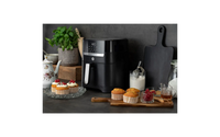 Valmistat kerralla jopa 6 annosta, joten voit loihtia ravitsevan aterian isommallekin porukalle. Airfryerin etuna on myös se, että ruoanvalmistuksessa muodostuu hyvin vähän hajuja ja käryjä.