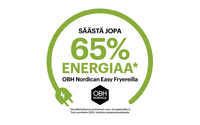OBH Nordican airfryer on yksinkertainen tapa pienentää kodin sähkönkulutusta. Sen avulla voit säästää jopa 65 % energiaa** verrattuna perinteiseen uuniin.