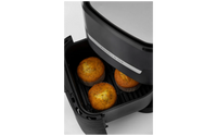 Valmistat sillä esimerkiksi rapeapintaisen ja sisältä mehukkaan lohen, kanansiivet, friteeratut katkaravut, grillatun kokonaisen broilerin, muffinssit tai siinä voi paistaa vaikka pizzan – mahdollisuuksia on rajattomasti. Lisäksi saat käyttöösi online-reseptikirjan, jossa on 30 inspiroivaa reseptiä ja opas kypsennyslämpötilan ja -ajan valintaan.