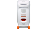 Teleskooppikahva ja leveät, tukevat pyörät: Tuo bileet paikalle helposti – sen varmistavat kaiuttimen leveät ja tukevat pyörät ja kätevä teleskooppikahva, josta saa hyvän otteen. Kahvan voi painaa alas, kun sitä ei tarvita.