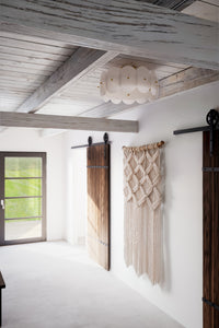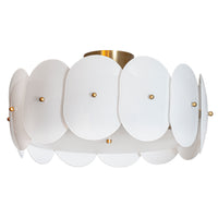 Mia Lagermanin muotoilema plafondi erottuu omaperäisellä muotokielellään, jossa kiiltävä valkoinen lasi ja messinkiset yksityiskohdat luovat tyylikkään veistoksellisen kokonaisuuden.