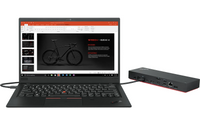 Toimii ThinkPad-kannettavilla, jotka tukevat tukevat Thunderbolt 3 / 4 ja USB 4 -tekniikkaa. Osa toiminnoista, kuten virtapainike sekä MAC address pass through ja Wake-on-Lan -ominaisuudet toimivat Lenovo ThinkPad-kannettavissa, mutta eivät välttämättä ole saatavilla muissa kannettavissa. Ulkoisten näyttöjen tuki vaihtelee ThinkPad-mallista riippuen. Katso tarkemmat tiedot tuetuista resoluutioista ja näyttökokoonpanoista täältä.(Ulkoinen palvelu) (Avautuu uuteen välilehteen)