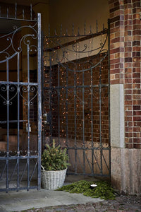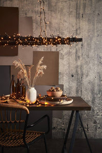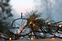 Ulkokäyttöön sopiva 2,8 metriä pitkä valosarja, jossa on mustassa kaapelissa 40 lämpimän valkoista, kultaan vivahtavaa LED-valoa.