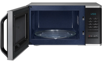 Tyylikäs, hopeinen Samsung MS23K3523AS -mikroaaltouuni on elektroninen ja helppokäyttöinen. Suuri 23 litran tilavuus mahdollistaa suurienkin astioiden käytön. T.D.S -tasalämpötekniikka lämmittää ruoan tasaisesti ja nopeasti. Helppokäyttöiset automaattiset sulatus ohjelmat sulattavat pakasteet tehokkaasti. Keraamisen sisäpinnan ansiosta mikro on helppo puhdistaa ja pitää siistinä. Selkeässä näytössä näkyy kellonaika sekä lämmitysaika. Mikrossa on pyörivä lautanen. Mikrosta saa poistettua merkkiäänet painamalla samanaikaisesti "nuolta alas" ja STOP -näppäimiä.