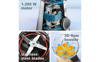 Sekoita kuumia keittoja ja kylmiä smoothieita, pirtelöitä ja proteiinipirtelöitä paksuseinäisessä, korkealaatuisessa 1,5 litran lasisessa sekoituskannussa, jossa on 3D-virtausvahvistimet. Kannun sisäseinämässä olevien virtausta vahvistavien muotojen ansiosta ainekset työntyvät teriä vasten, jolloin tulokset ovat nopeita ja tasaisia.