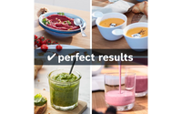 Saat täydellisiä tuloksia yhdellä napin painalluksella valitsemalla kolmesta automaattisesta ohjelmasta, joissa on kullekin toiminnolle optimoidut sekoitusnopeudet ja -ajat. Valitse automaattiohjelma tarpeesi mukaan: raikkaat ja maukkaat smoothiet, jäänmurskaus tai erityinen puhdistusohjelma.