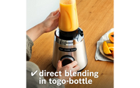 Smoothien voit ottaa mukaan kätevässä ja kestävässä ToGo-pullossa! Smoothien voit halutessasi myös tehdä suoraan pulloon, jolloin Blenderikannua ei tarvitse käyttää lainkaan. ToGo-pullo on valmistettu kestävästä, BPA vapaasta tritan-muovista. Vuotamaton ja tiivis rakenne takaa juoman huolettoman kuljetuksen.
