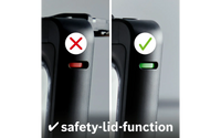 Ainutlaatuisen turvakannen ansiosta voit käyttää tehosekoitinta täysin turvallisesti, sillä laite ei käynnisty, jos kansi ei ole kunnolla kiinni. Älykkään kaatoavauksen ansiosta voit myös tarjoilla smoothieita ilman koko kannen avaamista.