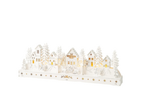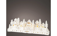 Tämä Lumineo LED -pöytäkoriste tuo viehättävän pienen talvikylän kotiisi. Vaaleasävyiset puut ja pienet talot muodostavat yhdessä rauhallisen lumisen maiseman. Koriste on valmistettu vaaleaksi maalatusta vanerista, ja sen hennot yksityiskohdat tuovat mieleen metsän rauhan. Lämminsävyiset LED-valot korostavat valaisimen tunnelmaa ja luovat koristeeseen kodikasta hehkua – täydellinen lisä esimerkiksi ikkunalaudalle tai sivupöydälle osaksi joulusisustusta.