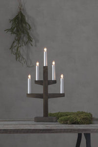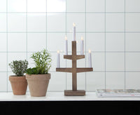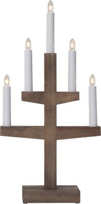 Tyylikäs ruskeaksi petsattu puukynttelikkö, joka sopii esimerkiksi ikkunalaudalle tuomaan ihanaa joulutunnelmaa.
