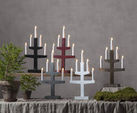 Kynttelikössä on 180 cm pitkä johto katkaisijalla ja 5 vaihdettavaa E10-lamppua.