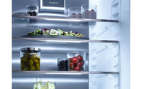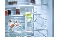 Täysin uudistettu FlexiLight-hyllyvalaistus varmistaa tasaisen valaistuksen koko jääkaappitilaan. Kahden hyllyn etureunan ohut LED-valonauha valaisee tehokkaasti lasisten hyllyjen läpi hyllyn ylä- ja alapuolelle. Säädettäessä hyllyjen korkeutta valo seuraa mukana, taaten näin aina optimaalisen valaistuksen.