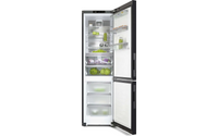 Mielen energiatehokas, laadukas ja erittäin tilava 2 m korkea jääkaappipakastin A-energialuokalla. Laitteen innovatiivisen PerfectFresh Active -tuorejärjestelmän ansiosta tuoretuotteet säilyvät jopa viisi kertaa kauemmin kuin normaalissa jääkaappilämpötilassa. Täysin uusi, tyylikkään musta BlackSteel -väritys. Moderni, kahvaton muotoilu takaa sen sopivuuden keittiöön kuin keittiöön. Ovessa erittäin helposti puhtaana pidettävä CleanSteel-teräksinen pinta. Innovatiivisen FreshTouch -kosketusnäytön avulla lämpötilansäätö tapahtuu tarkasti asteen tarkkuudella molemmille osioille erikseen sekä eri toimintojen ja asetusten säätö käy erittäin kätevästi. Jääkaapin ja pakastimen ovet avautuvat kevyesti oveen integroiduilla Click2Open kahvoilla. Ovet myös sulkeutuvat pehmeästi SoftClose-ovimekanismin ansiosta. Täydellinen valaistus FlexiLight-hyllyvalojen ansiosta. Erittäin kestävät ja monipuolisesti säädettävät turvalasiset hyllyt sekä astianpesukonepesun kestävät ovihyllyt mahdollistavat monipuoliset säilytysmahdollisuudet. XL-sisätilavuuden ansiosta jääkaappiin mahtuu jopa Miele kalusteuunien leivinpelti. DynaCool-puhallin kierrättää jääkaapin sisällä olevaa viileää ilmaa pitäen koko jääkaapin sisälämpötilan tasaisena. Näin voit säilyttää ruokatarvikkeita missä tahansa jääkaapin osassa, eikä tarvitse huolehtia lämpötilaeroista. Jääkaapissa on teräksinen kuiva takaseinä, mikä varmistaa, että laitteen takaosaan mahdollisesti tiivistyvä kosteus ei pääse kosketuksiin jääkaapissa säilytettävien tuotteiden kanssa. Pakastinosan uuden Freeze&Cool toiminnon ansiosta pakastimen lämpötilaa voidaan säätää monipuolisemmin, joten sitä voidaan käyttää myös esim. jääkaappi- tai nollatilana. Pakastimen automaattinen NoFrost-sulatus pitää huolta sulatuksesta puolestasi. Jääkaapin pikajäähdytys ja pakastimen pikapakastustoimintojen ansiosta ruoka jäähtyy erittäin nopeasti ja parantaa näin sen säilyvyyttä. Pakastintilaa voidaan tarvittaessa laajentaa hyllyjen VarioRoom-toiminnon avulla. Jääkaappipakastin on mahdollista verkottaa Miele@Home -järjestelmään, jolloin sen käyttö ja hallinta onnistuu myös etänä älylaitteen kautta.