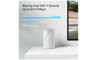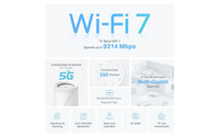 Deco BE65 on koko kodin Wi-Fi-ratkaisu, joka pitää verkkosi vahvana kotisi koosta ja rakenteista huolimatta. Järjestelmä käyttää yhtä verkon nimeä ja vaihtaa yhteyttä tukiasemien välillä saumattomasti tekoälyä hyödyntäen (AI-Driven Mesh) sekä pystyy multi-link operoinnin (MLO), 320 MHz kanavan ansiosta hyödyntämään kahtatoista data siirtokaistaa ja eri taajuuksia tehokkaasti. Järjestelmä tukee jopa yli 200 yhtä aikaista käyttäjää. Deco BE65 on yhteensopiva myös WiFi 5 ja WiFi 6 laitteiden kanssa. Verkon laajentaminen on helppoa TP-link Deco reitittimillä.