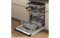 En av de bästa funktionerna hos den här diskmaskinen är dess justerbara hyllsystem. Du kan justera diskens positioner efter dina behov, så att olika storlekar på disk, kastruller och stekpannor får plats bra i maskinen. Besticklådan med 3 nivåer gör användningen av apparaten ännu mer flexibel och möjliggör bättre utnyttjande av utrymmet.