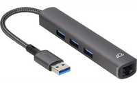 Bluecloud USB-A-hubb med gigabit ethernet, 4 portar