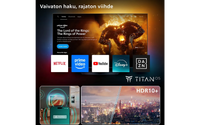 - TV-appar inkluderar Netflix, YouTube, Amazon Prime, HBO, Rakuten TV, Viaplay, Yle Areena, Ruutu, Disney+ och Blockbuster.*