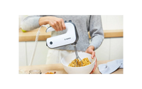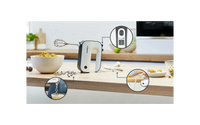 Bosch MFQ49300 elektrisk mixer är den perfekta följeslagaren för alla köksutmaningar. De innovativa FineCreamer-visparna i stål ger snabbt och effektivt fluffighet och volym till bakverk. Oavsett om det är ett lätt marängskum eller en tjock deg, hanterar den här apparaten allt felfritt. De extra starka degkrokarna i stål är utformade för att bearbeta även de mest krävande degarna, som bröd- och pizzadeg.