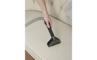 Den kraftfulla 1200-wattsmotorn i textilrengöringsmaskinen PowerClean 56A producerar en sugkraft på 13 kPa, vilket garanterar utmärkta rengöringsresultat på alla textilytor. Membranpumpen reglerar automatiskt mängden och trycket på sprayvattnet, vilket förhindrar överdriven vattenförbrukning och främjar snabb torkning. Enheten är idealisk för rengöring av till exempel bilsäten, möbler och vanliga och heltäckningsmattor. Efter behandlingen förblir ytorna rena och fräscha utan tvättmedelsrester eller överdriven fukt. Använd endast tvättmedel som är lämpligt för textilrengöringsmedel i enheten för att säkerställa korrekt funktion och rengöringsprestanda.