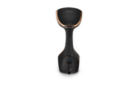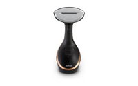 Ångstrykaren bärs på plagget medan den hänger på det väggmonterade ångstället, så det finns inget behov av strykbräda. Den avtagbara vattentanken (200 ml) gör att du kan stryka kontinuerligt i cirka nio minuter utan att behöva fylla på tanken mellanåt.