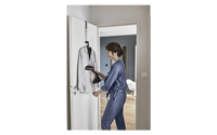 - Standardtillbehör: hängande ångstöd, tygborste för ångning av tjocka tyger, ångskydd för ömtåliga tyger och dörrhake