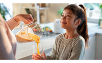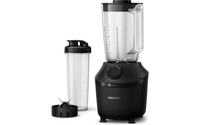 Philips mixer i 3000-serien är mångsidig. Dess unika ProBlend-system kombinerar tre tekniker som är utformade för att ge ett jämnt och klumpfritt resultat. Använd ProBlend-systemet och pulsinställningen för att krossa isbitar till små bitar på bara 45 sekunder*. Den kraftfulla 450-wattsmotorn cirkulerar ingredienserna jämnt, och de slitstarka bladen i rostfritt stål förblir vassa, rostfria och fläckfria under lång tid. De innovativt utformade bladen maximerar också mixerns skäryta. Dessutom har kannan unika åsar som leder ingredienserna tillbaka till cirkulationen. Med en verklig kapacitet på 1 liter rymmer kannan 5 drycker åt gången (200 ml flaskstorlek).** Efter användning är mixern enkel att rengöra, eftersom kannan, bladen och locket tål maskindisk.