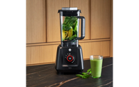 Power Fuel-mixern har tre förinstallerade program: soppa, smoothie eller grönsaksdryck. Mixern har ingen värmeplatta, men tack vare den höga hastigheten värmer mixern innehållet i kannan på några minuter, vilket gör det enkelt att tillaga varm purésoppa även utan att först koka ingredienserna. Power Fuel producerar hög effekt och vridmoment även vid låga hastigheter, vilket gör det enkelt att till exempel göra nötsmör. Den medföljande mataren låter dig blanda ingredienserna i kannan och mäta temperaturen i kannan.