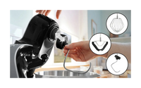 Matberedaren levereras med ett brett utbud av tillbehör, såsom degkrokar, vispar, mixer, samt olika rivblad och skärskivor för rivning och skivning. 3D PlanetaryMixing-funktionen säkerställer jämn och effektiv mixning både i sidled och vertikalt, vilket förbättrar kvaliteten på de rätter du tillagar. Tillbehören tål maskindisk, och det är enkelt att byta degkrokar och vispar med EasyArm Lift-knappen.