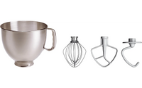 KitchenAid-köksmaskinen är en förlängning av kockens hand. Den legendariska köksmaskinen har en rundad design och är tidlös och elegant. Tack vare designen är den också lätt att rengöra och använda. Köksmaskinens helmetallkonstruktion säkerställer att den är robust, hållbar och stabil i användning. Köksmaskinen är av utmärkt kvalitet och har en genomsnittlig livslängd på 30 år (4000 timmar) med 5 års garanti. Med extra tillbehör kan du göra köksmaskinen till en ännu mer mångsidig förlängning av din hand efter dina egna behov. Möjligheterna att tillaga de måltider du vill ha är mycket breda. Den blandar ingredienser noggrant i tio olika hastigheter och bearbetar upp till 1 kg mjöl och 12 medelstora äggvitor.