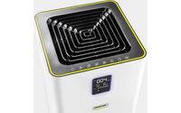 Kärcher AF 50 luftrenare erbjuder snabb och effektiv hjälp för att förbättra inomhusluftens kvalitet. Denna modell fungerar optimalt i rum på cirka 50-100 m² och gör luften fräsch och ren på bara några minuter. Damm, pollen, obehagliga lukter och kemiska gaser filtreras effektivt och omärkligt bort av enheten. Den hållbara aktiva koltekniken gör att filtret har en livslängd på cirka 12 månader under normala förhållanden och daglig användning. Filtrets antibakteriella beläggning separerar tillsammans med aktivt kolfiltrering 99,95 % av skadliga föroreningar (partikelstorlek 0,3 µm). Enheten kan enkelt flyttas från rum till rum och tack vare sitt nästan omärkliga ljud kan den även användas i sovrum. Sensorn övervakar rumsluftens kvalitet och justerar automatiskt funktionerna. Kontrollpanelen visar temperatur, relativ luftfuktighet och mängden fint damm. Den indikerar också när filtret behöver bytas ut.